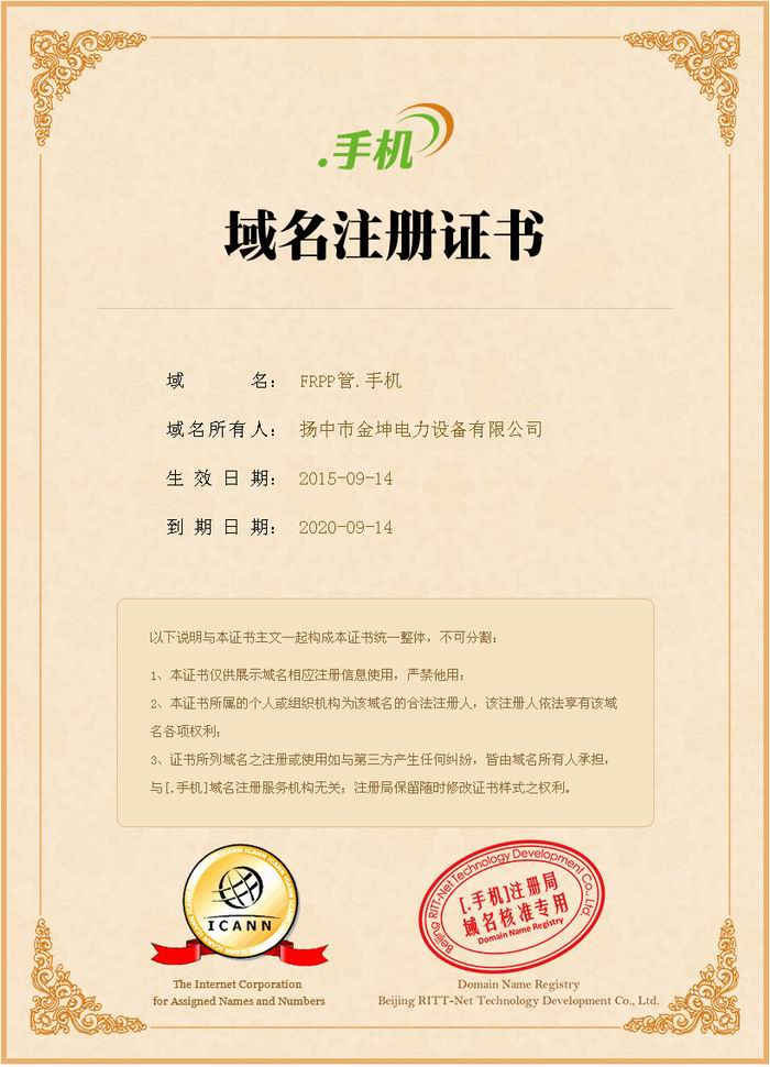 热烈庆祝扬中市金坤电力设备有限公司“.手机”域名成功开通